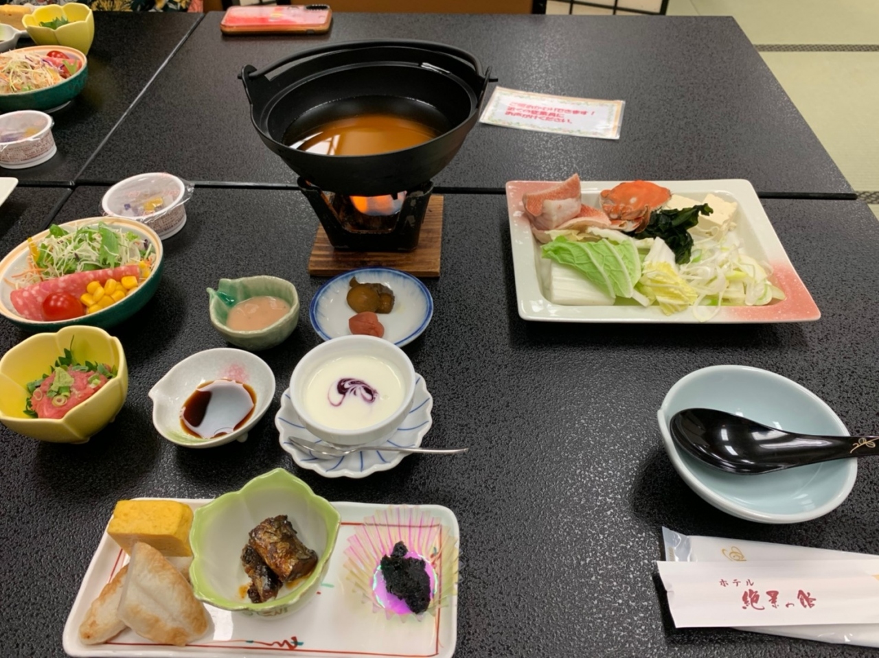 宿泊料は一人当たり2食付きで18,700円ですが、この時はGO TO利用で12,155円でした。