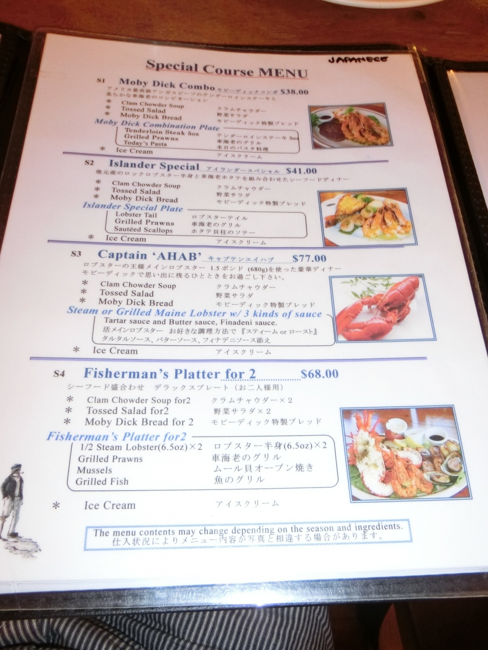 ロコモコやハンバーガーなどもあり、シーフードのメニューは7~8種類と思ったより少な目でした。