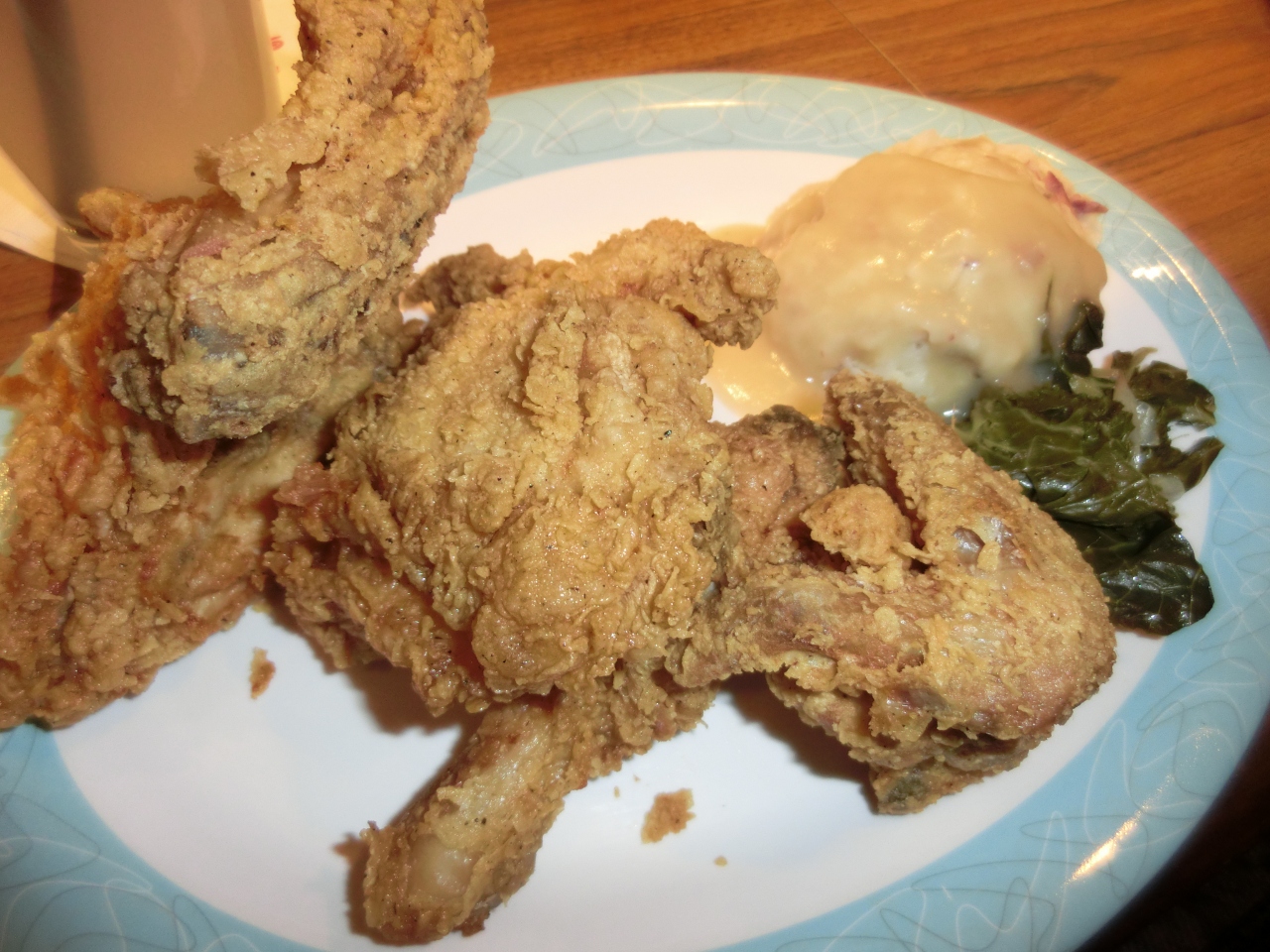 フライドチキンは、3ピースのチキンにマッシュポテトとホウレンソウのような緑の温野菜が付いて18.99ドル(税別)。