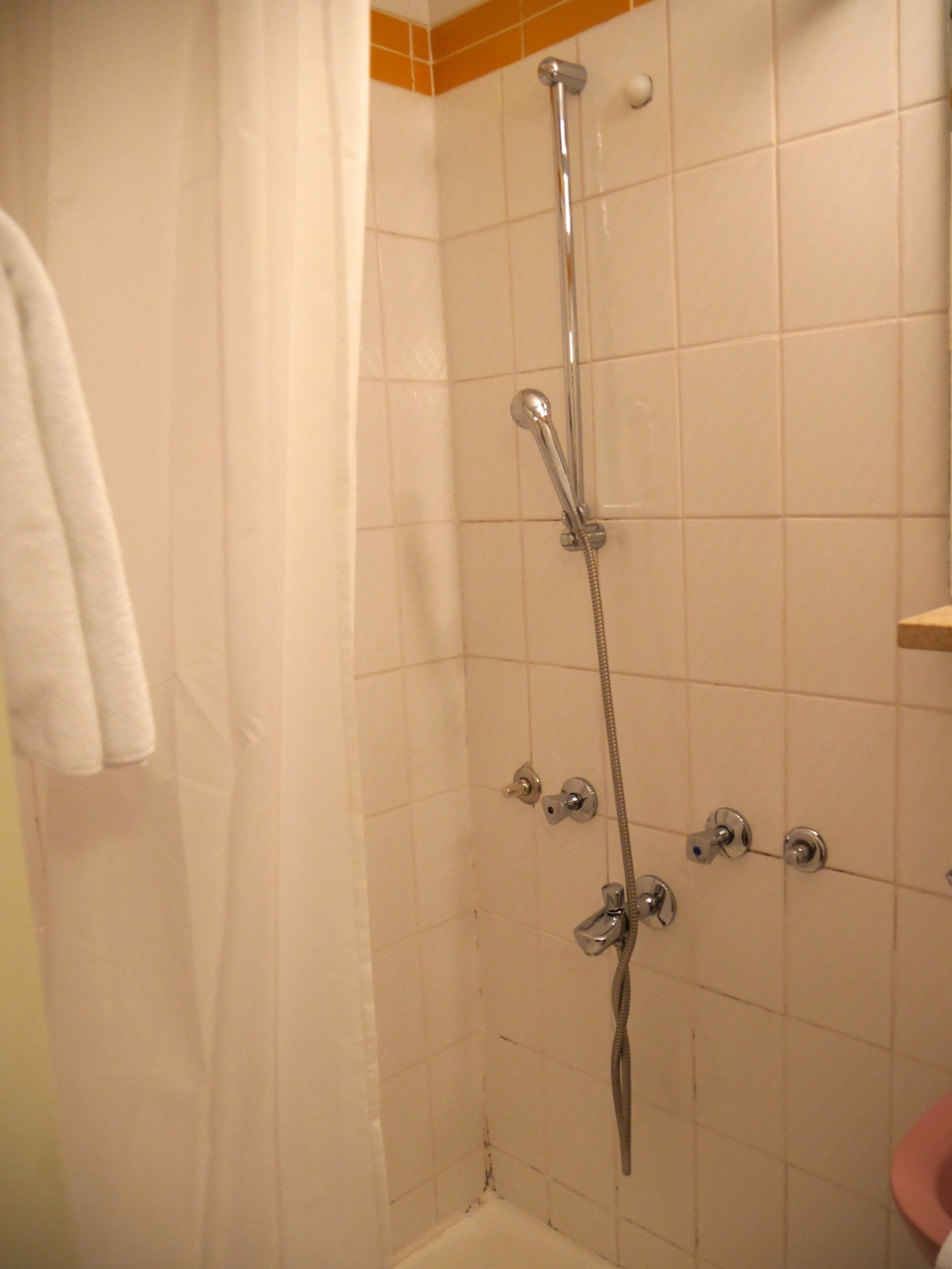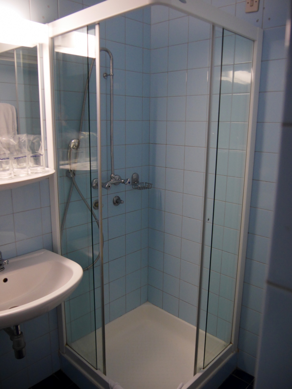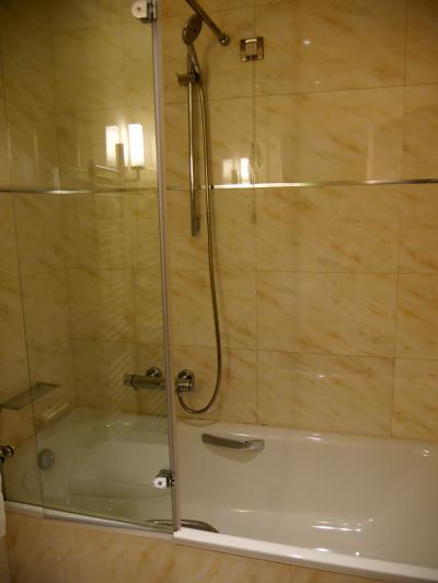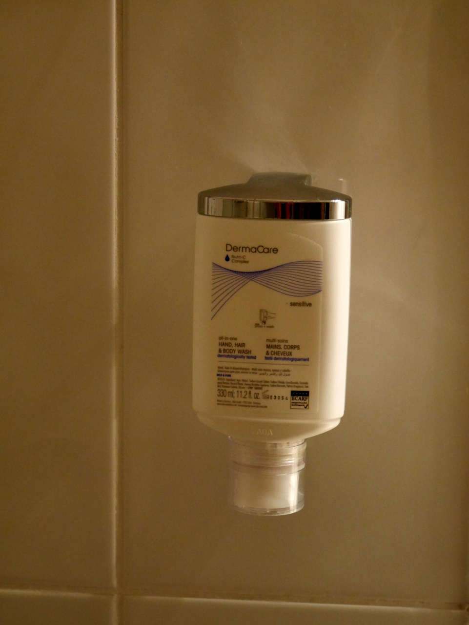 バスタブはなくシャワーのみで、シャワー室の扉がトイレの便器に当たってしまうのが不便で、石鹸・シャンプー・コンディショナーがそれぞれ別ではなく、容器に入ったソープのみで用を足すようになっていました。