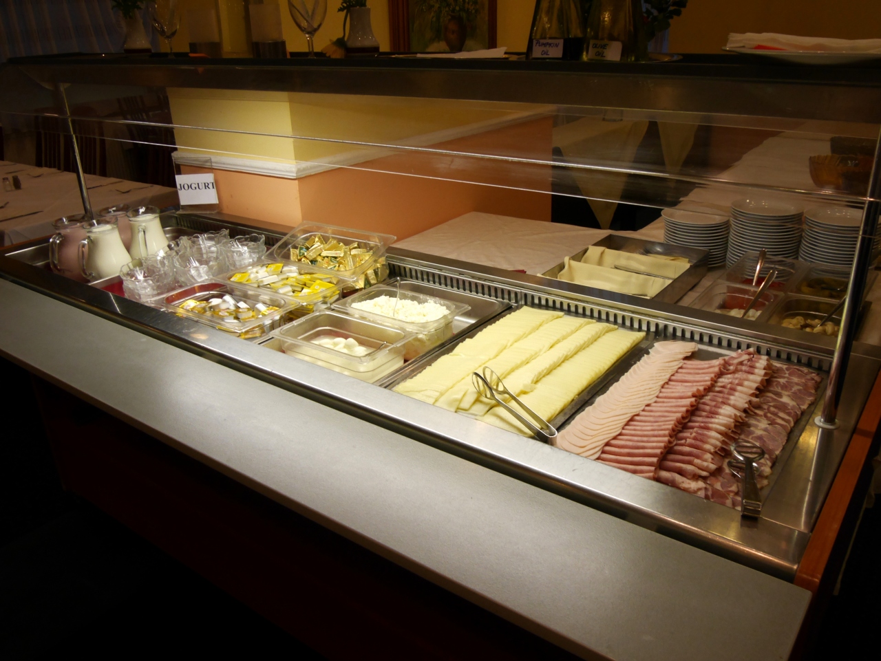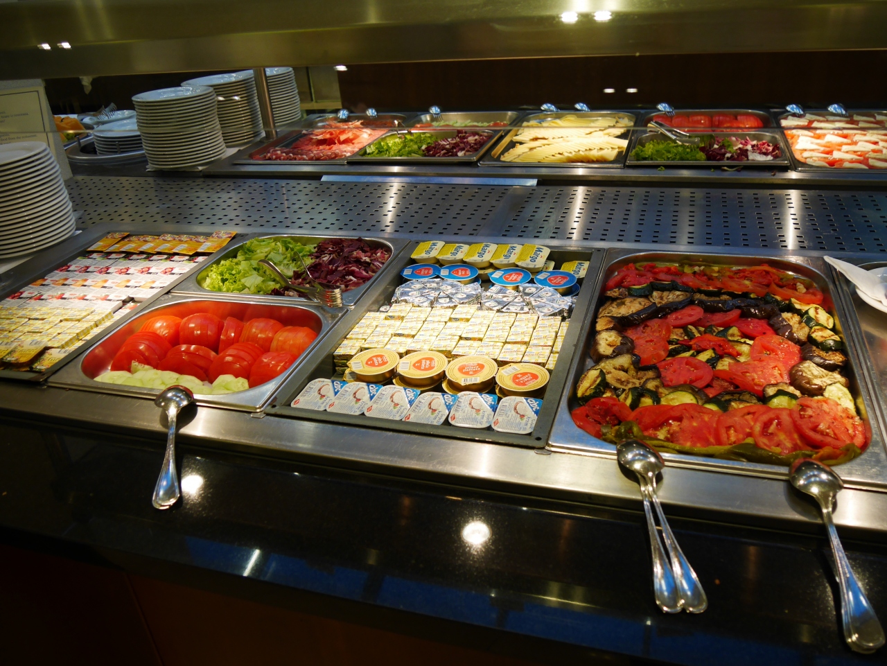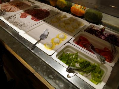 朝食のビュッフェは、一般的にあるハムやチーズの他に野菜はトマトやパプリカがありました。- 旅行時期