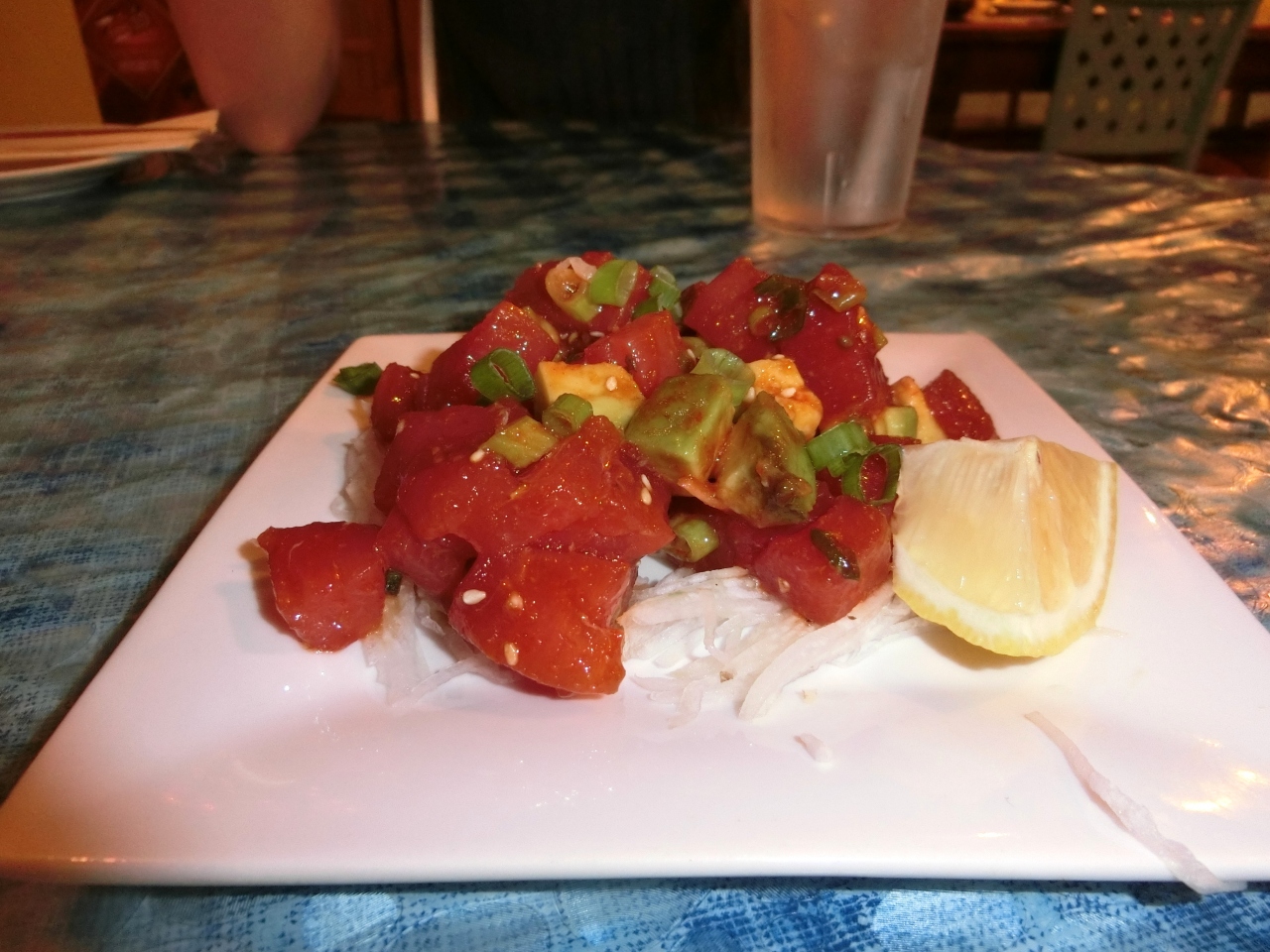 ポキ(8ドル)は、ハワイでもっと美味しいポキを食べているせいか、もう一つという印象です。