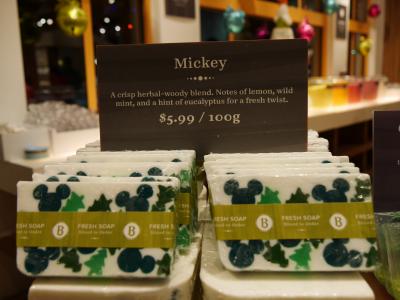 石鹸の専門店でミッキーの模様が入った石鹸が数種類あります。