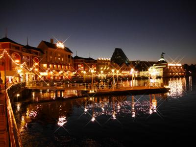 海辺のリゾートを思わせるボードウォークにはレストランやパン屋などがあり、夜景がとても綺麗です。- 旅行時期