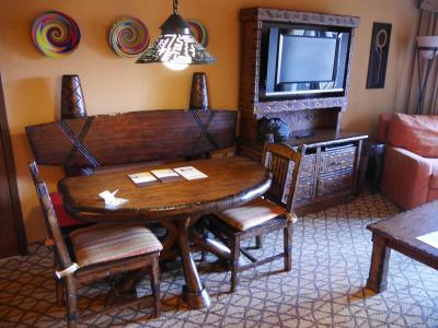 キッチンのタイルに動物が描かれていたり、家具もアフリカンないい感じを出しています。