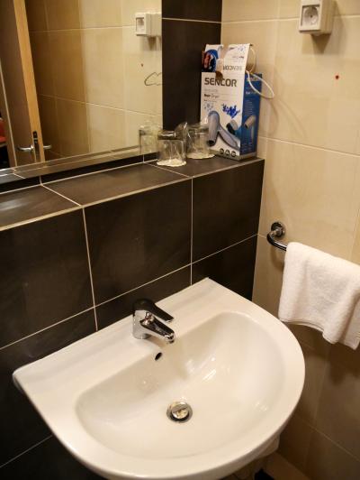 洗面は大きく、バスタブもありますがお湯は少し温めでした。