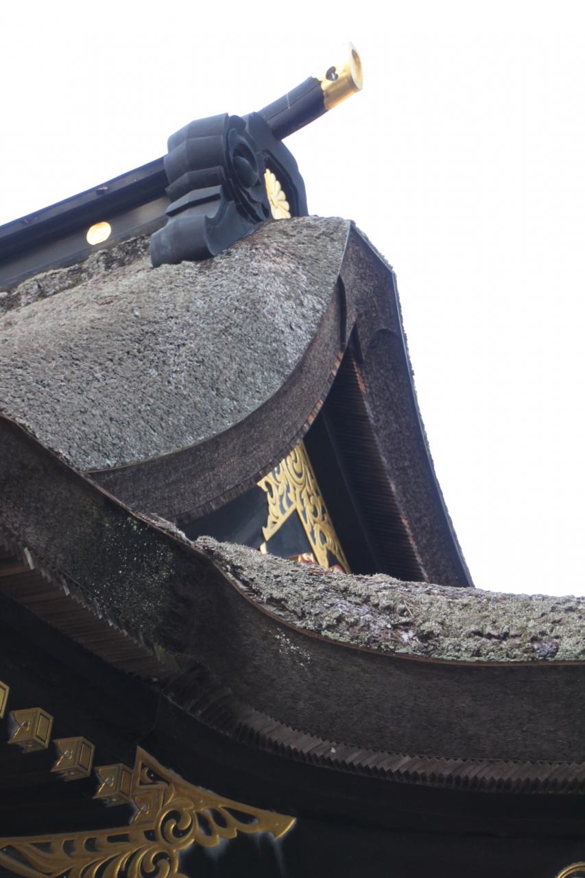 本殿は黒を基調とした造りで重厚感にあふれ、屋根は桧皮葺でとても趣きがあります。