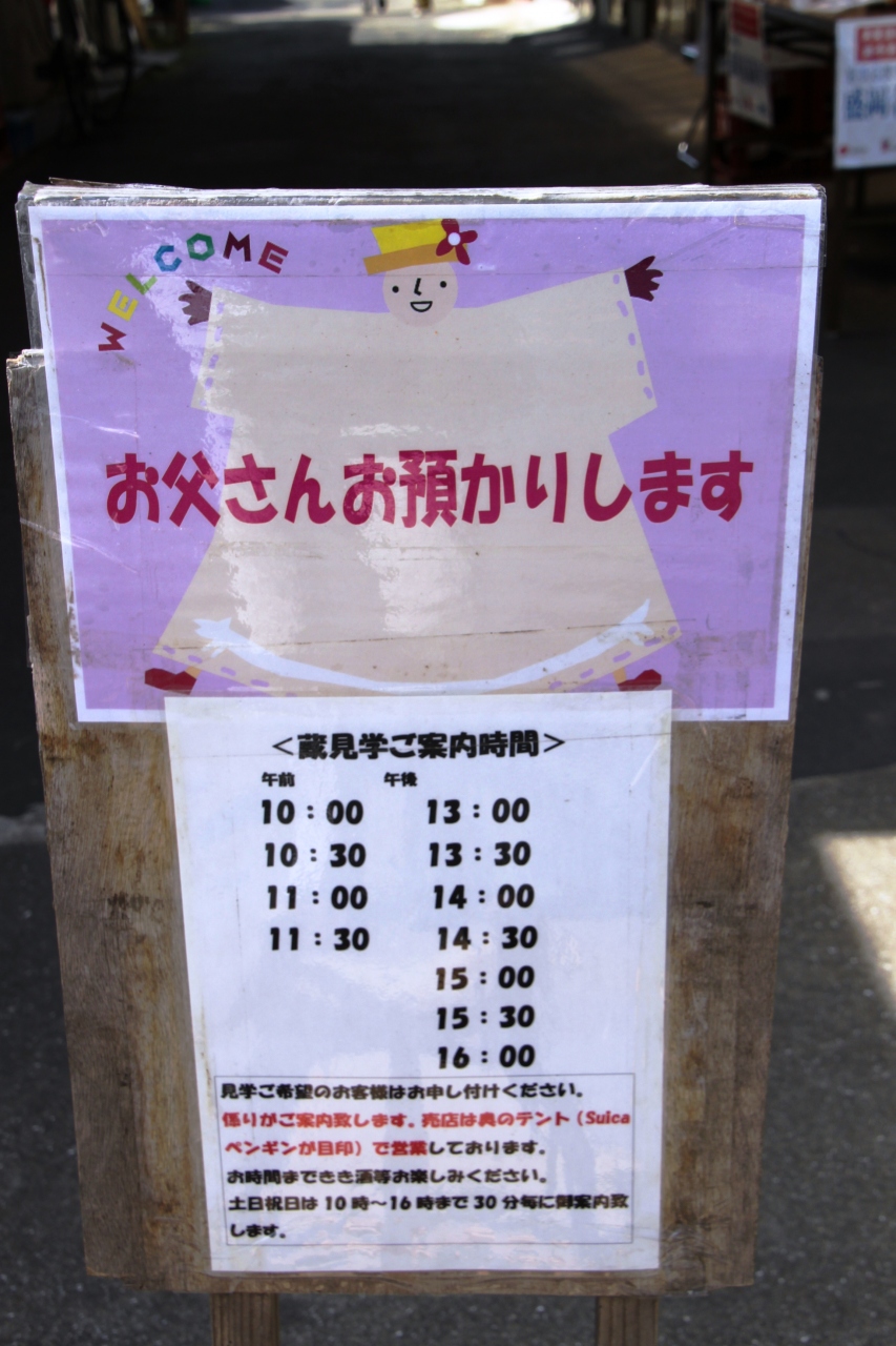 土日祝は、午前中4回・午後7回、30分おきに酒蔵の案内があります。