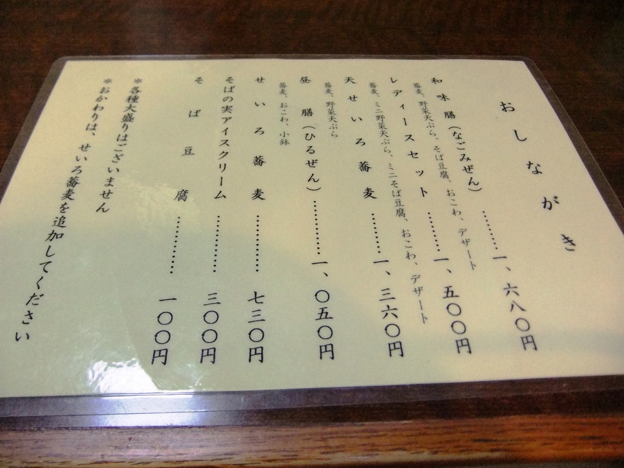 せいろ蕎麦が730円で、温かい蕎麦は置いていません。