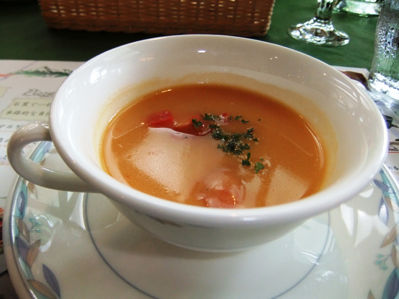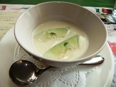 この日感激したのはデザートで、冷製のスープのようなデザートでした。