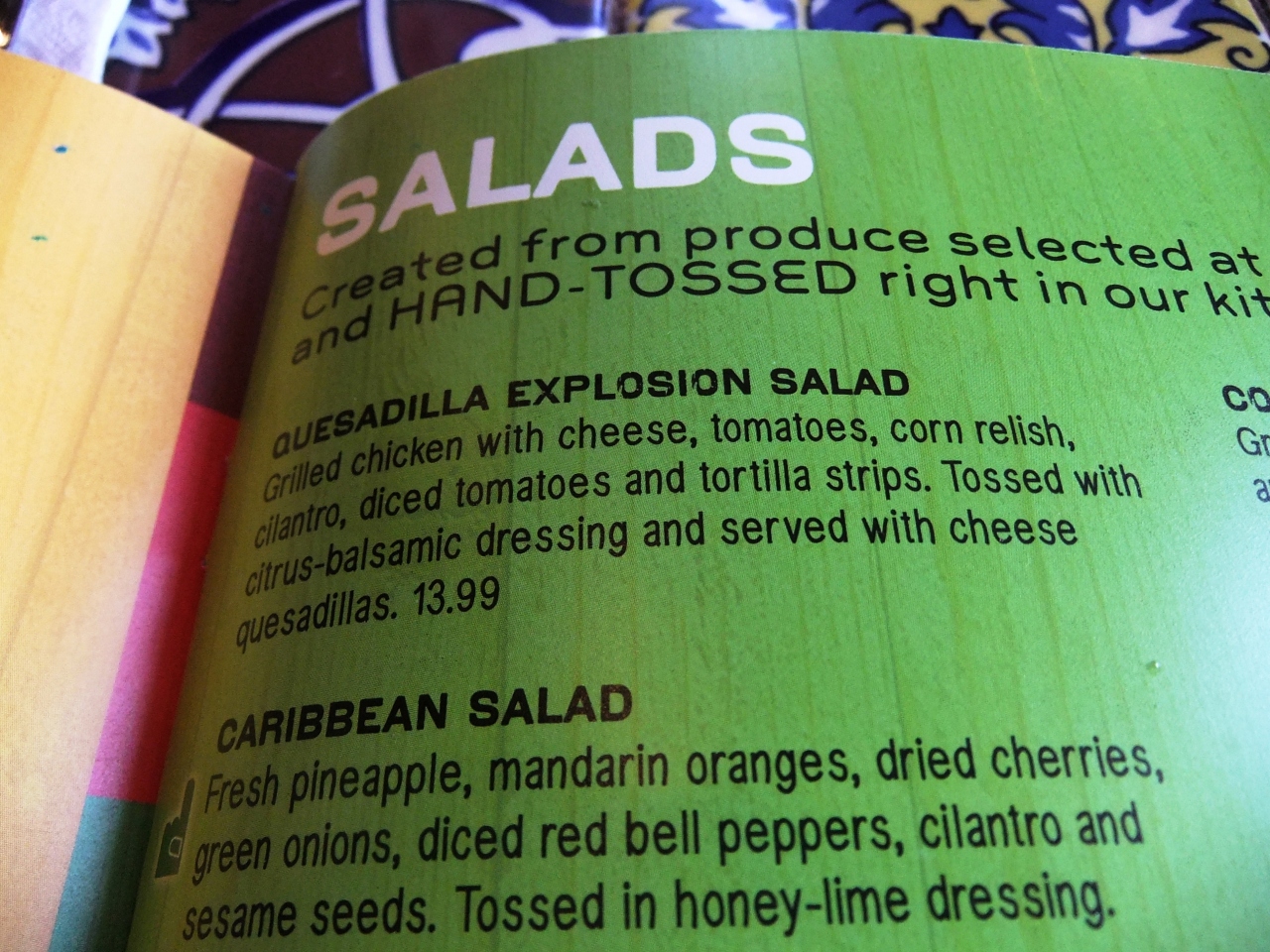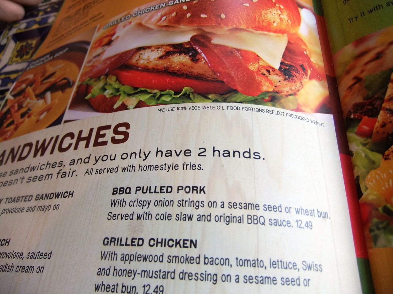 食べたのは、BBQボークサンド(12.49ドル)とケサディーヤ入りサラダ(13.99ドル)。