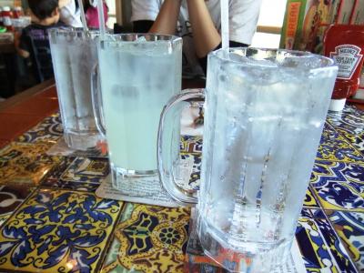 ソフトドリンクは、大きなジョッキで出てくるので、一人では飲みきれません。(水もジョッキで出てきます)