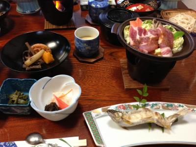 夕食は家庭料理というような雰囲気で、鮎の塩焼き・天ぷらは温かい出来立てを出してくれ、豚の陶板焼きがけっこう美味しかったです。- 旅行時期