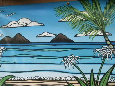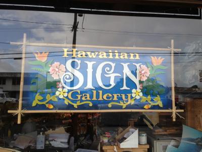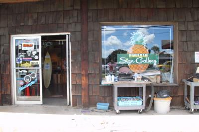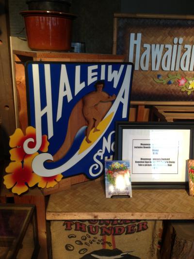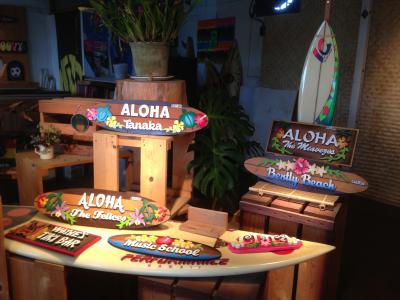 店内には色々とサインボードが置いてあるので、こんな感じのボードを作りたいと店主のハリスに言うと、ハワイっぽさたっぷりのサインボードを作ってくれます。