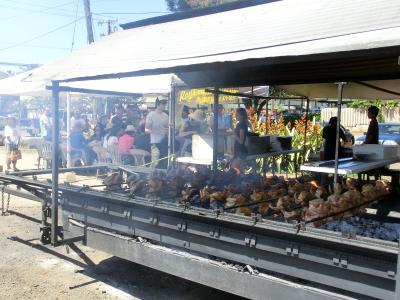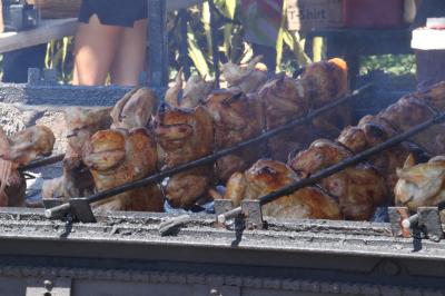フリフリとは回転させるという意味で、丸ごとチキンを串に刺し、回転させながらじっくり焼いていきます。