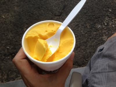 マンゴのソルベは濃厚でフルーティー感たっぷりで、これは注文して正解でしたが、肝心のフルーツは盛り合わせ(パイナップル・イチゴ・キウイ)を買ったのですが、パイナップルにジューシーさはなく、イチゴは硬くて、スーパーで買ったフルーツの方がはるかに美味しいなと感じました。- 旅行時期