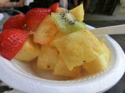 店は小さくカットされたフルーツやアイス類が売っていて、店の前には椅子も置いてあります。
