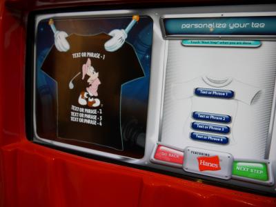 モニターがあるので、画面にタッチしながらキャラクターや文字などを選択し、自分のオリジナルTシャツを作りあげていきます。