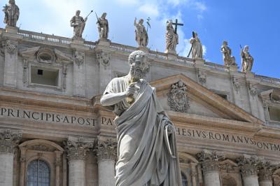 大聖堂前にあるペテロ像。手に天国の鍵をもっている。それをお譲りいただく...