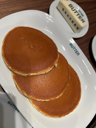 ホットケーキを注文、薄めのホットケーキ3枚にbutter1つ。