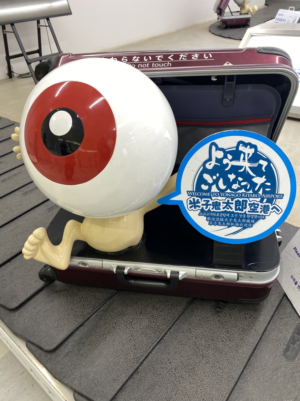 荷物が出てくるところにはキャリーに乗った目玉おやじ。