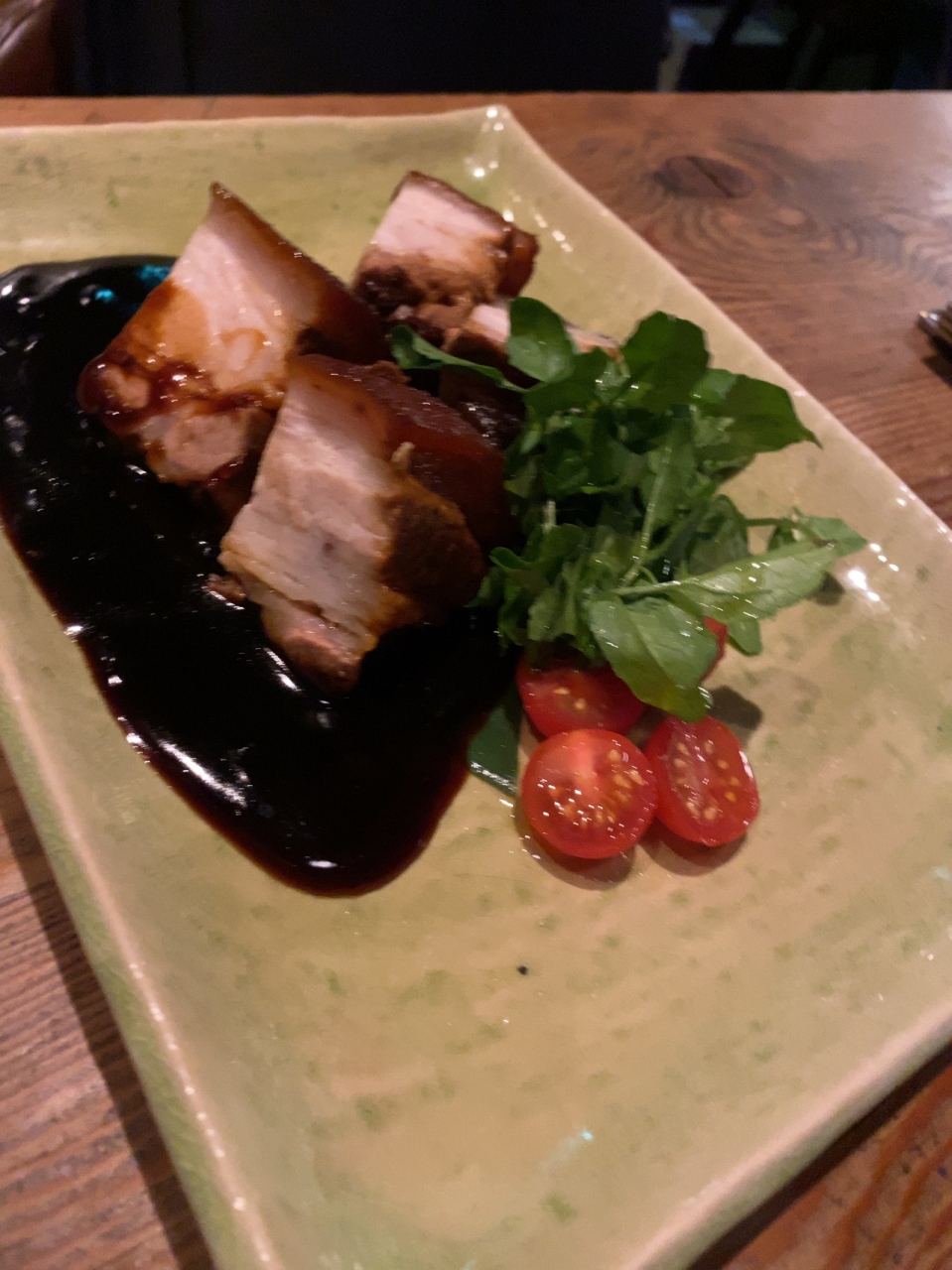 燻製の角煮は中華風の少し甘いソースでいただきました。