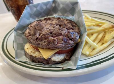 お肉とお肉で挟んだバーガーがありますが、こちらは店内飲食限定です。