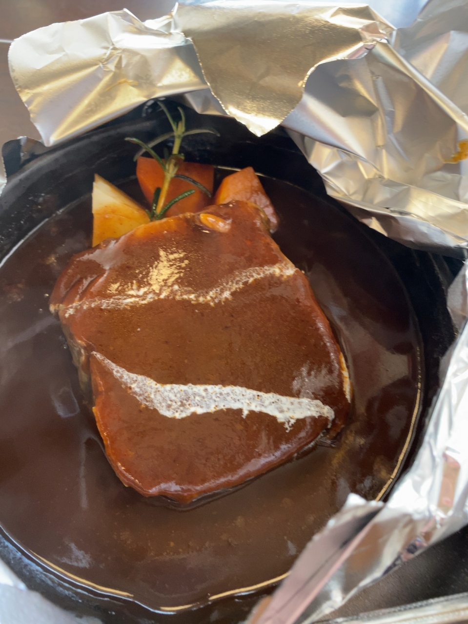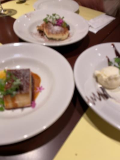 前菜、サラダ、お魚、お肉、デザートとワインも、赤白3種類、スパークリングが用意されています。