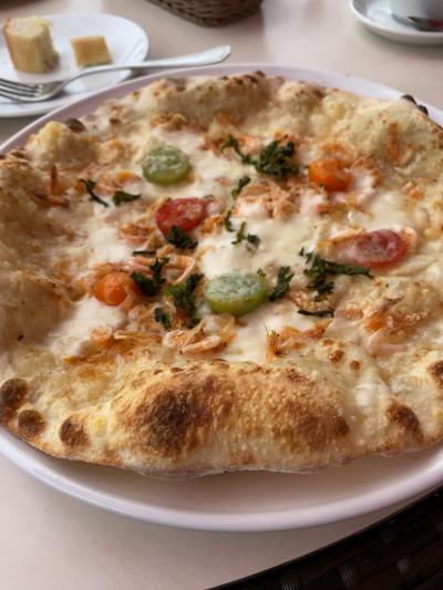 ピザをいただきましたが、薄くて好きなタイプ、タケノコはサクラエビの入った春のピザでした、和の味つけで美味しいです。- 旅行時期