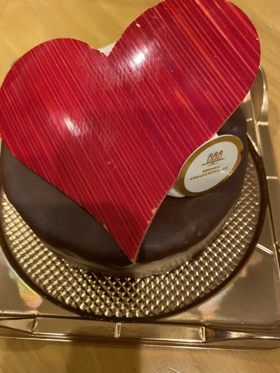 チョコケーキの上には真っ赤なハートのプレート、とても可愛いです。
