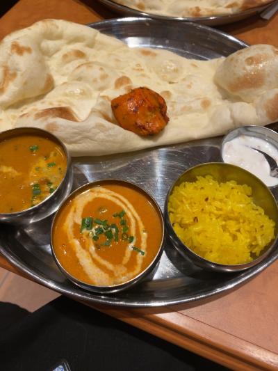 こちらのカレーは辛さも調整できるし、ナンも食べ放題、2種類のカレーを選べて、サフランライス、ナン、チキン、サラダ、ヨーグルト、ドリンクで1100円と、満腹になります。