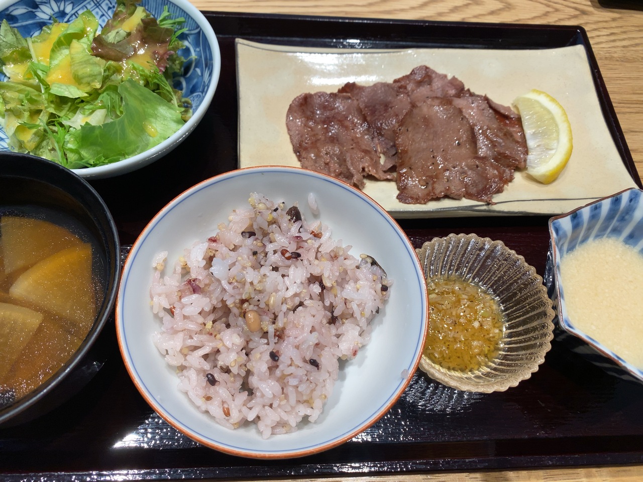 牛タンは思っていたもの(写真?)と違い、かなり薄めでした。