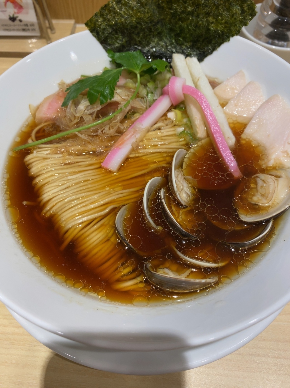 蛤・鶏・煮干しのトリプルSOBAを注文。