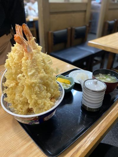 ミニ天丼にはエビがしっかり2本入っていて揚げたてで美味しいです。