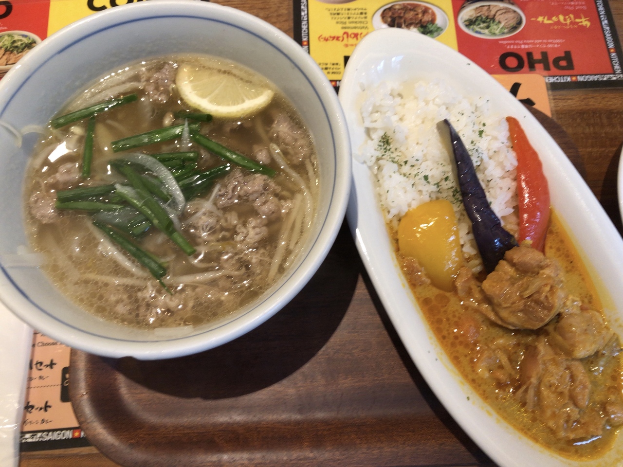 パクチー抜き牛肉フォーとイエローカレーのハーフandハーフをいただきました。