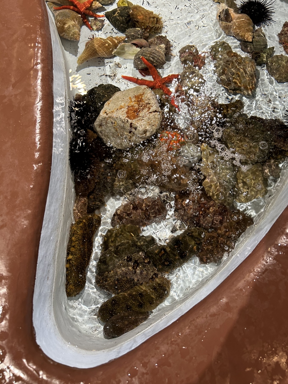 なまこ、貝、人でなど触れることのできるコーナーや体験講座もあり