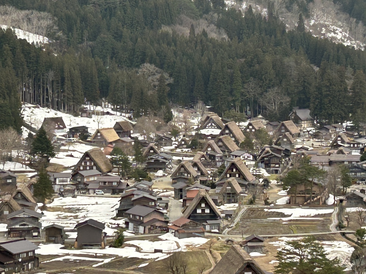 3月半ば、屋根には雪はないけど、まだあちこちに雪が残っています。