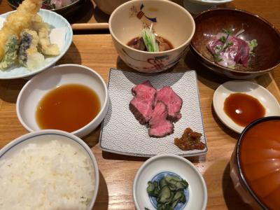 天ぷら、ローストビーフ、お造り、魚の煮つけと大満足な品揃えです。