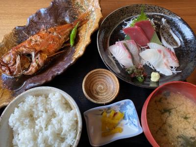 小金目鯛煮付きちょい刺し定食 1900円、すごい量で美味しいです。