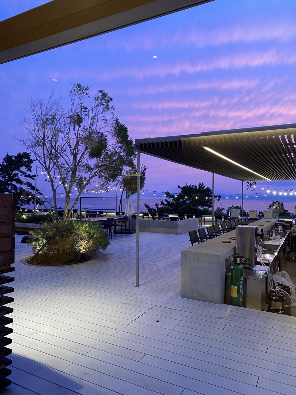 レストランの窓からは、逗子海岸や江の島が見えて、とても景色がいいです。