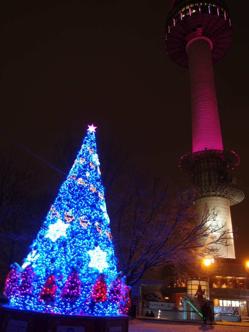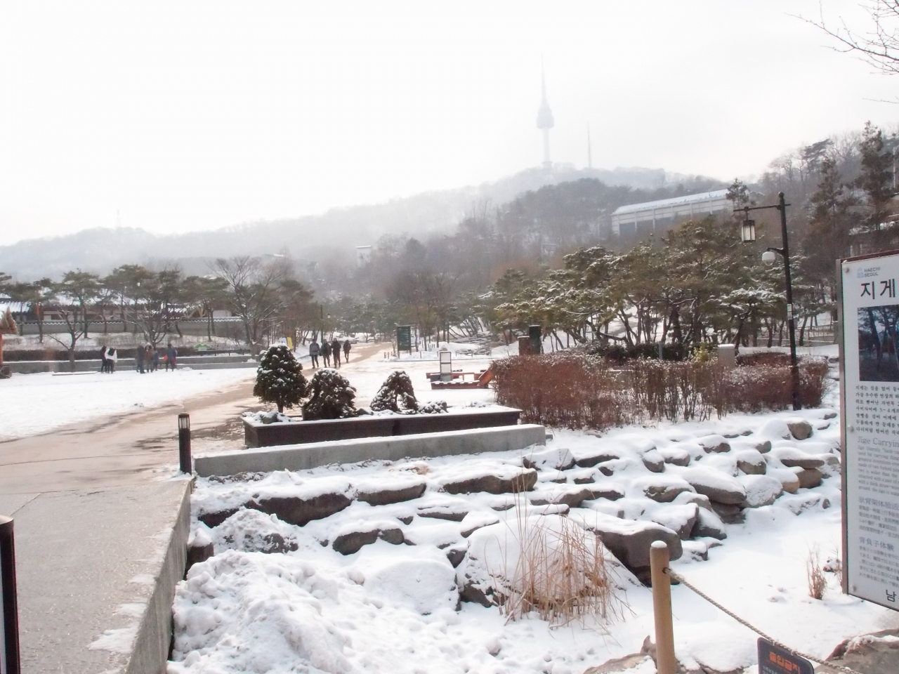 1月のソウルタワーは極寒で雪が積もり何回か滑りましたww