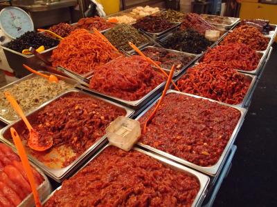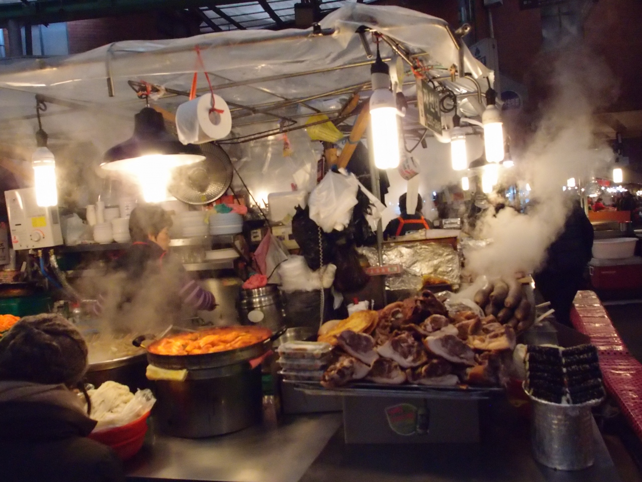 朝早かったのでまだ準備中なお店もありましたが、韓国の市場の雑多な感じと屋台グルメの美味しさ、屋台のおばちゃんたちの暖かい笑顔が印象的です。