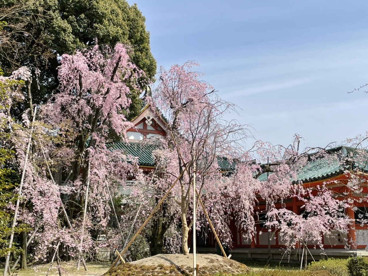 桜の時期に平安神宮に参拝し、ちょうどしだれ桜が満開ということでしたので、神苑にも入場してきました。