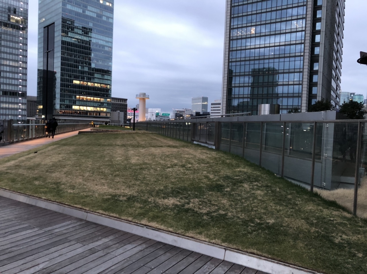 東京駅の丸の内側から出て、すぐ横にあるのが旧郵便局のKITTEです。ここは東京駅の赤レンガの駅舎を眺められる名所で、外に出られるガーデンがあります(無料です)
