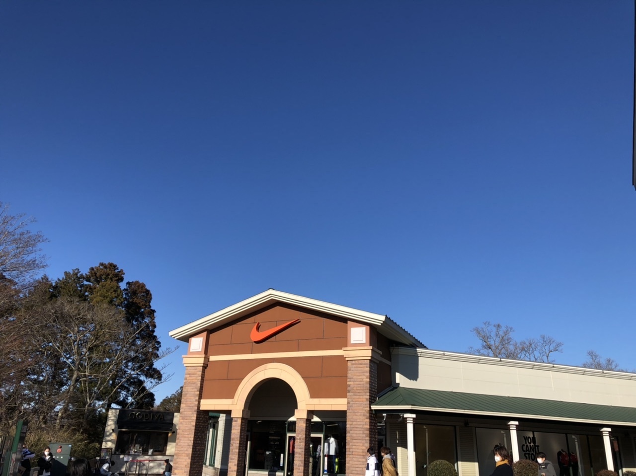 御殿場プレミアムアウトレットのイーストゾーン、ウエストゾーンとつなぐ「夢の大橋」の手前にナイキショップが入っています。