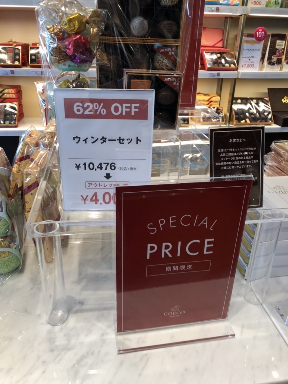 イベントごとに沢山のシーズナル商品を販売しては、アウトレットで激安で売るスタイルですが、こういったイベントものはかなり当たりはずれがある印象なので、よくよく見極めてから買ったほうが良いと思います。- 旅行時期