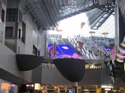 京都駅ビルの大階段は、季節ごとに凝ったイルミネーションのショーがあり、待ち時間などに立ち寄ると目を楽しませてくれます。