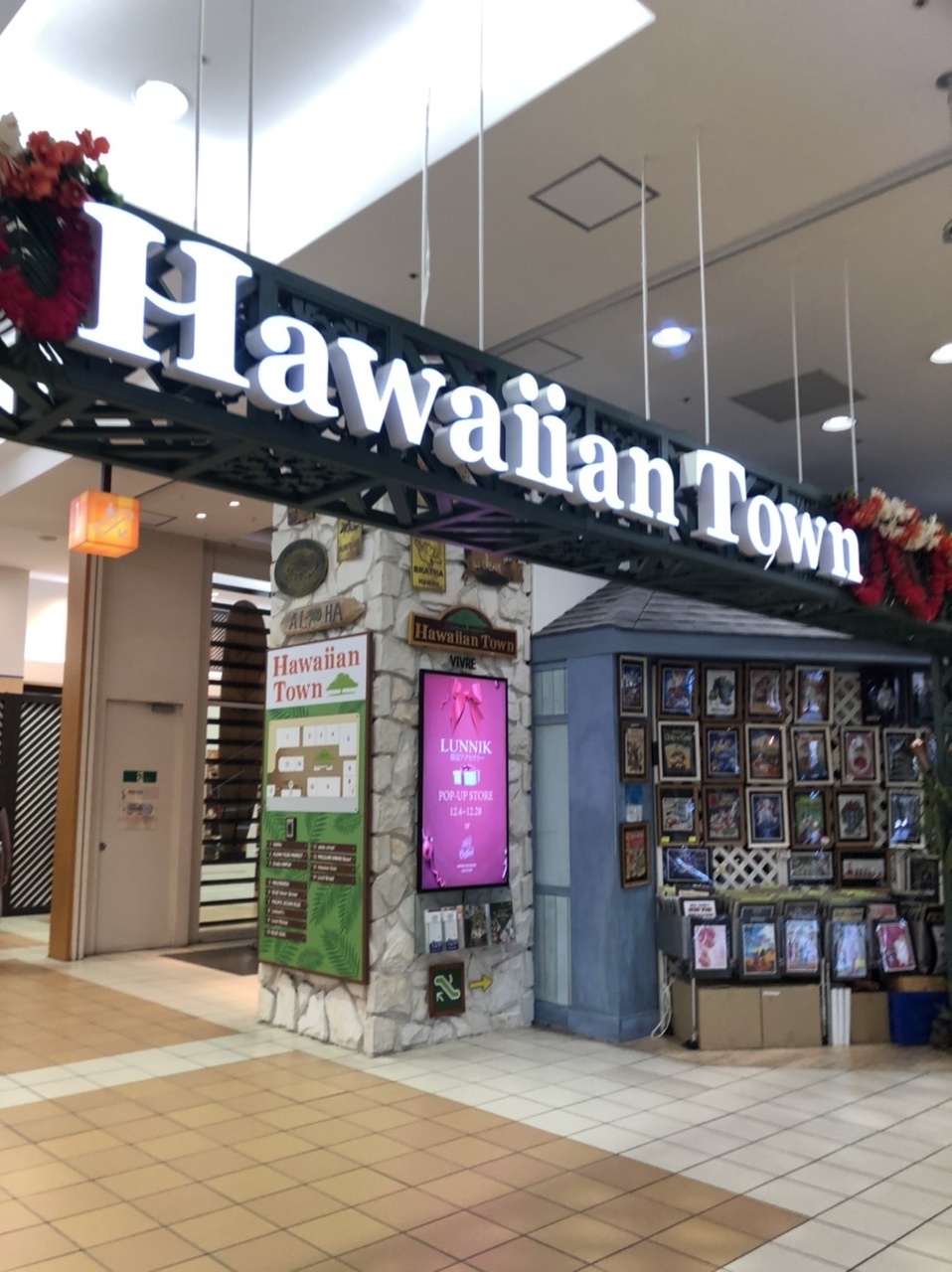 みなとみらいのワールドポーターズの中に入っている、ハワイ関連のお店が並んでいるエリアがハワイアンタウンです。