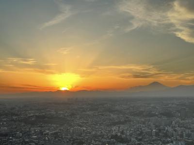 富士山、丹沢、箱根連山が夕日に浮かび上がり、暗くなると街の明かりが美しく、こちらも素晴らしかったですよ。