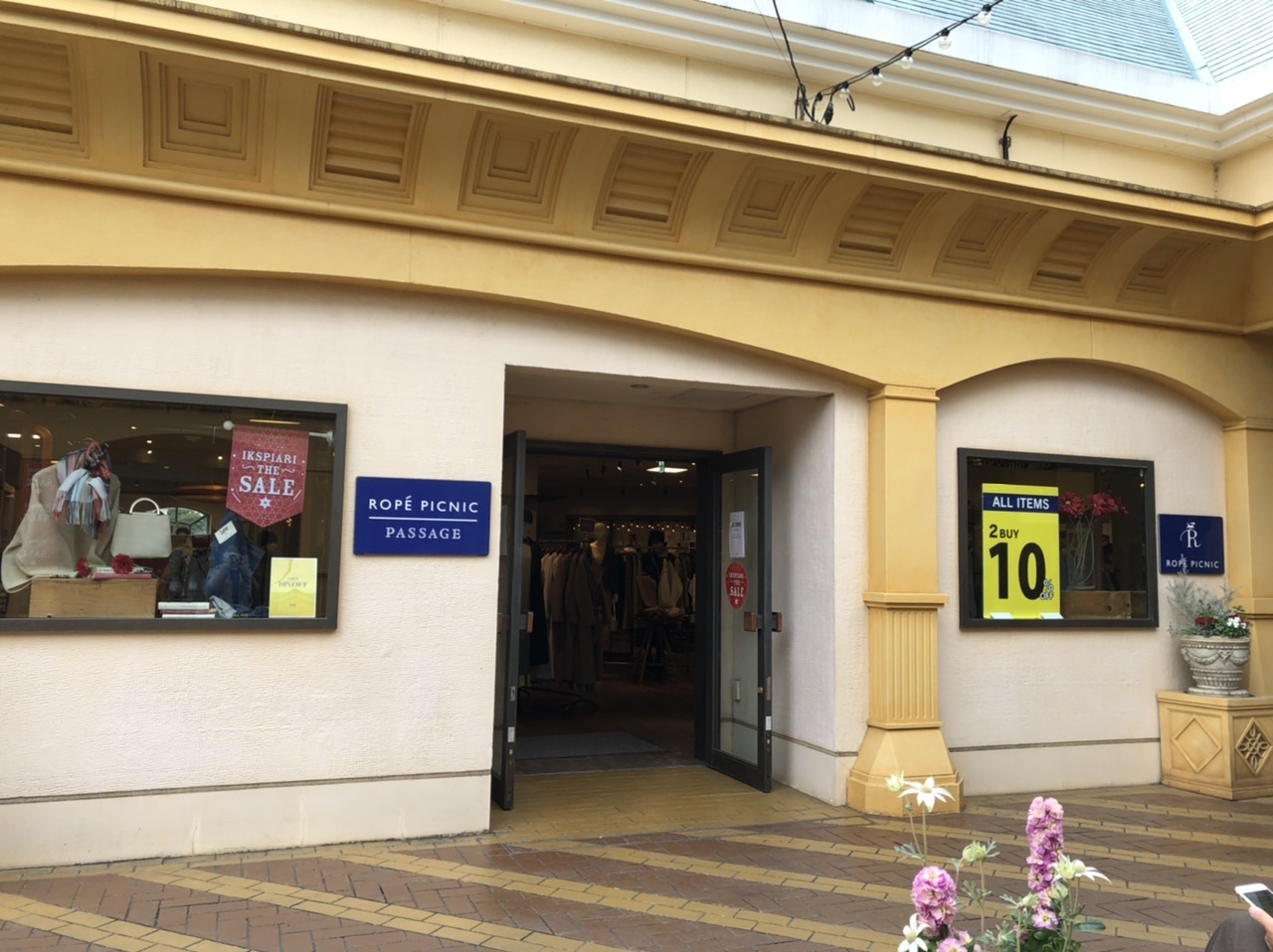 JR舞浜駅からすぐのショッピングモール、イクスピアリの中にロペピクニックが入っていました。ここはロペのカジュアルラインのお店で、少しキレイ目ながらもかなりプチプラな服が並んでいて、コスパは抜群です。旅先であ!替えの靴下忘れた!とか羽織もの忘れた!なんていうときに、サっと買いに行くのにとても便利です。